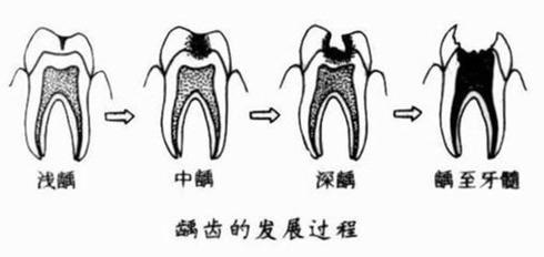 2、中龋:深入到牙本质浅层,这时在牙齿的表面可出现一个明显的黑洞。
