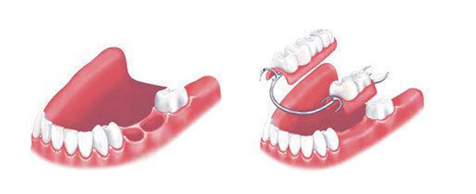 2.活动假牙:利用剩余天然牙或粘膜作为支持,依靠金属或弹性纤维的卡环,固定在口腔内剩余的天然邻近牙或其他相关的牙齿上的方式。